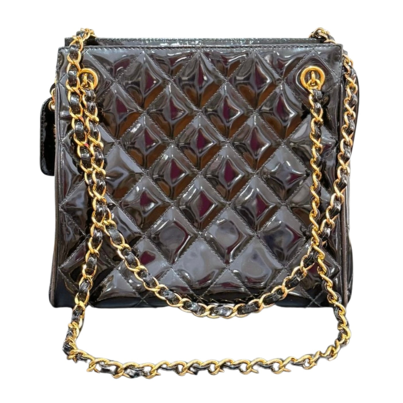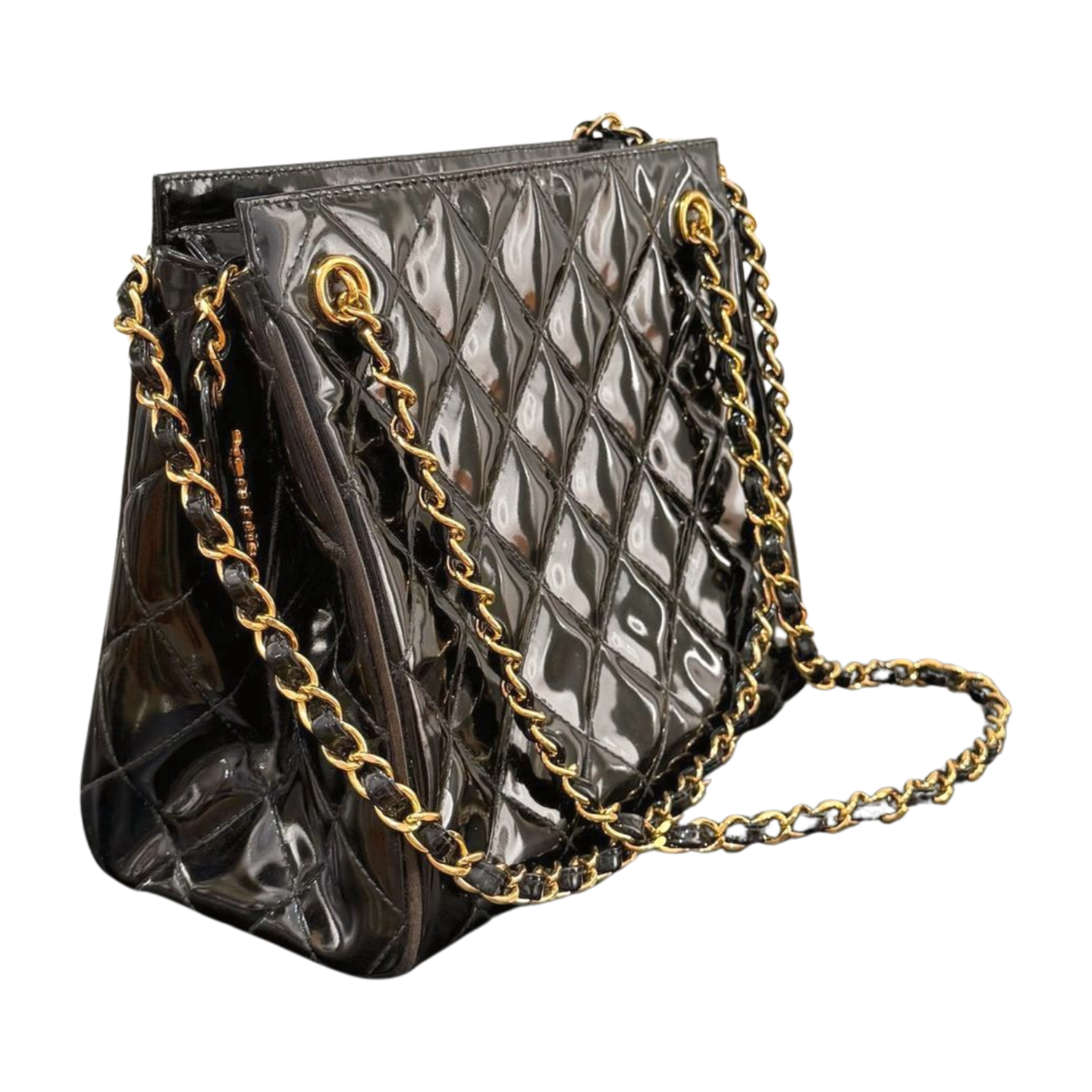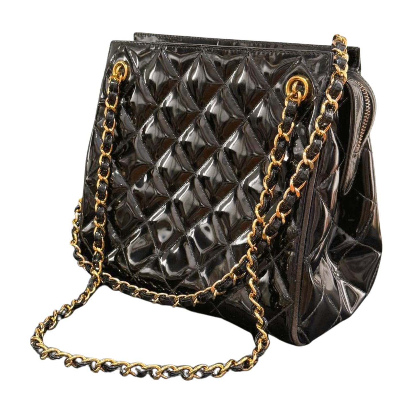 Elevate your daily carry with this chic and practical Chanel Shopping Tote, crafted in luminous black patent leather. The iconic diamond quilting and mini size make a powerful statement, while the signature chain straps complete this piece of enduring Parisian elegance.