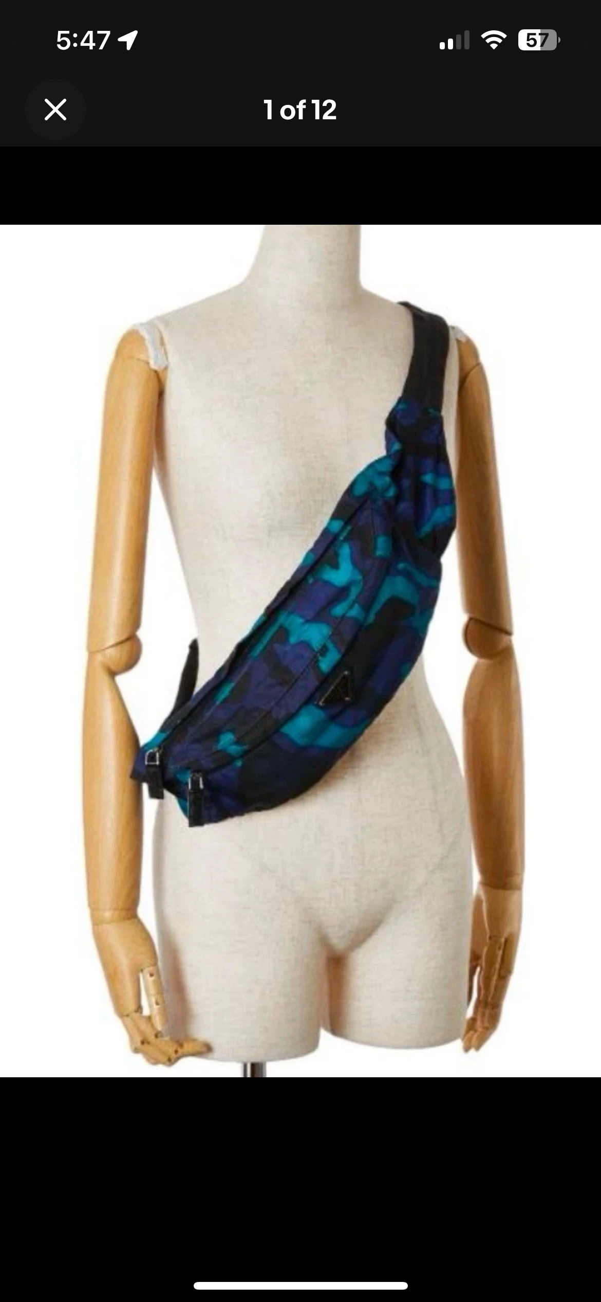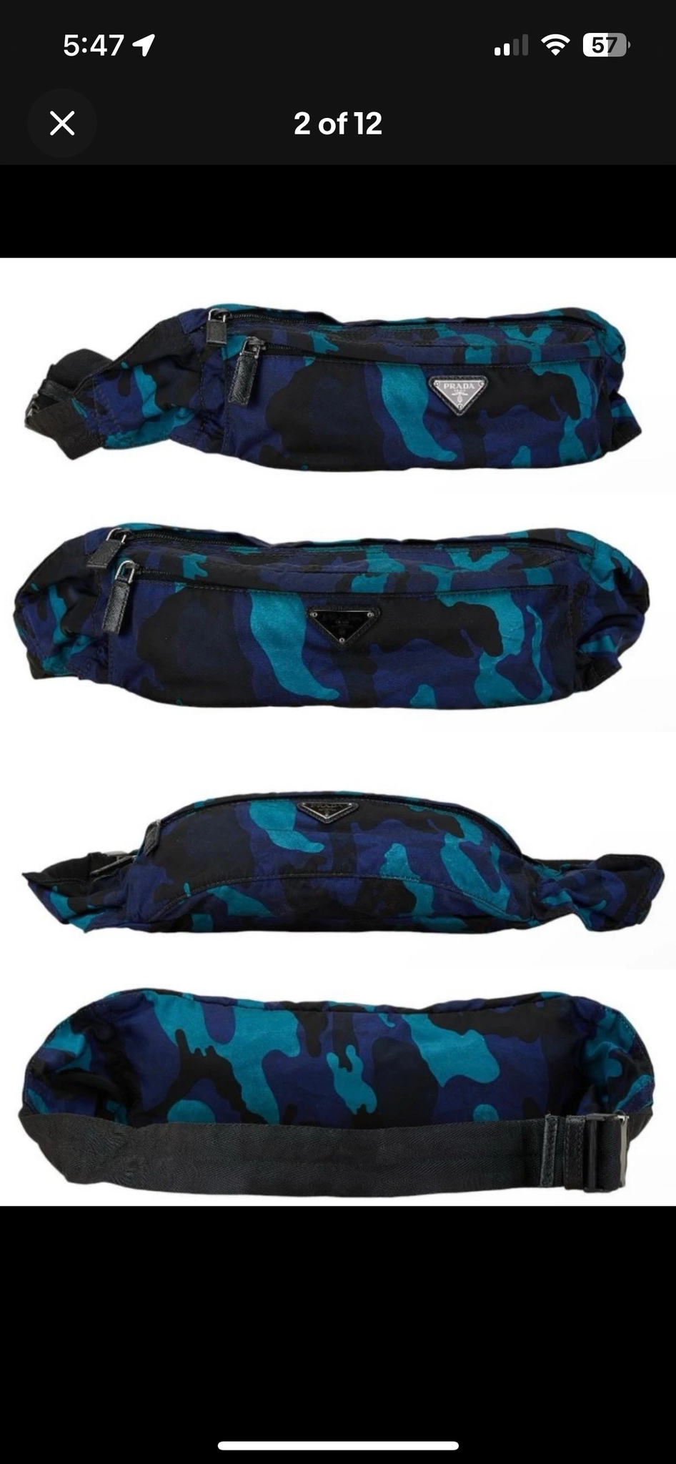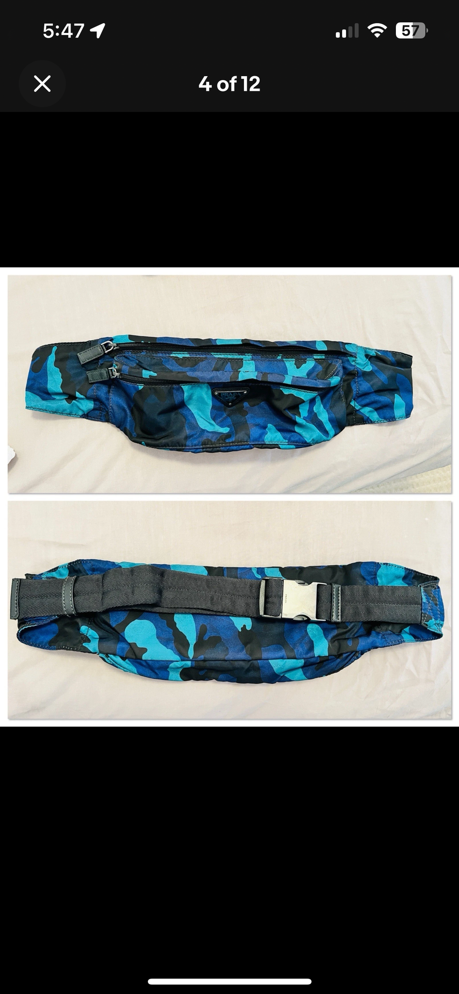 Prada Camouflage Camo Large Bum Crossbody Waist Belt Bag Blue Black Handbag