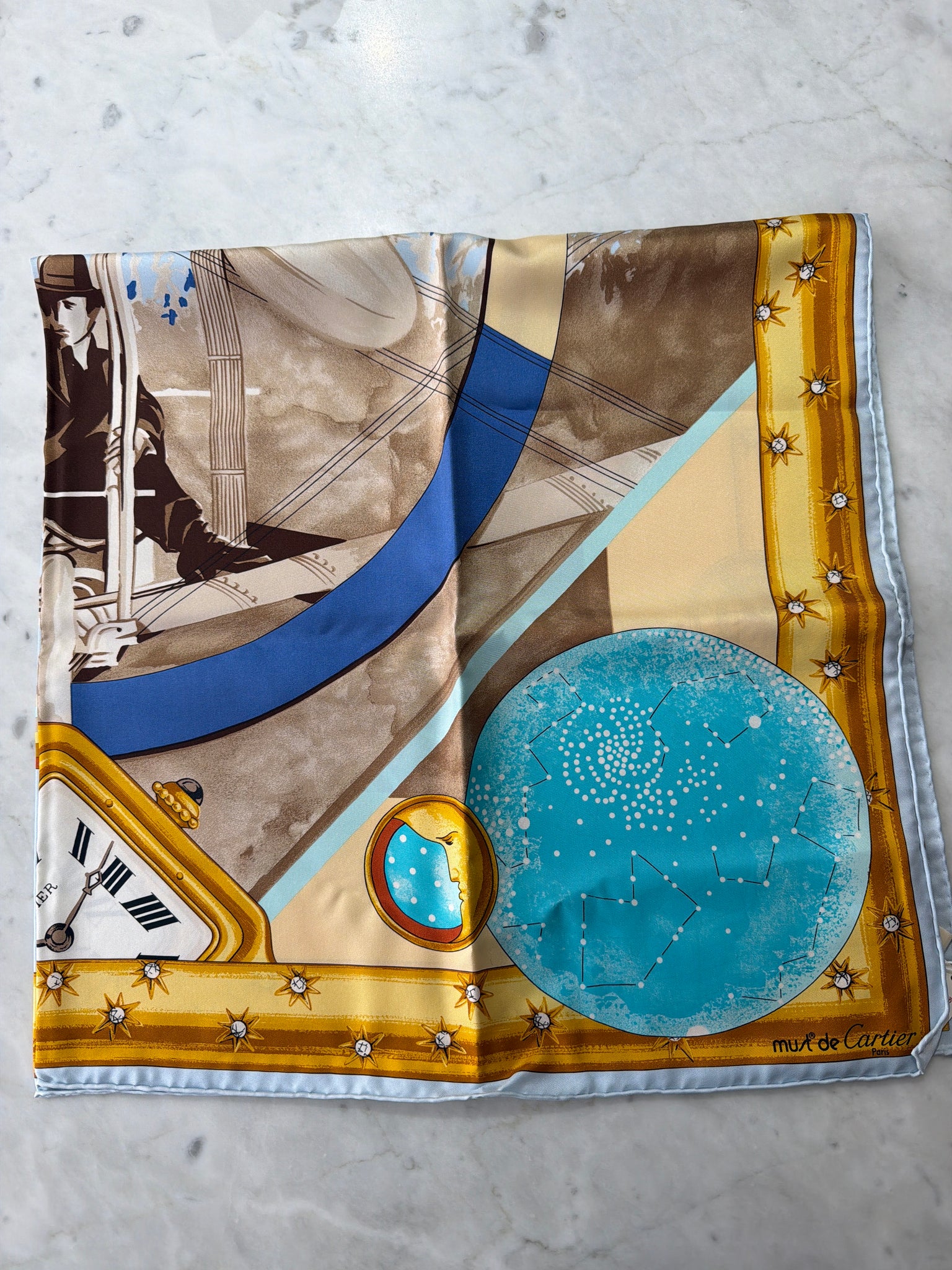 Cartier | Silk Scarf with Celestial Print (Good Condition)