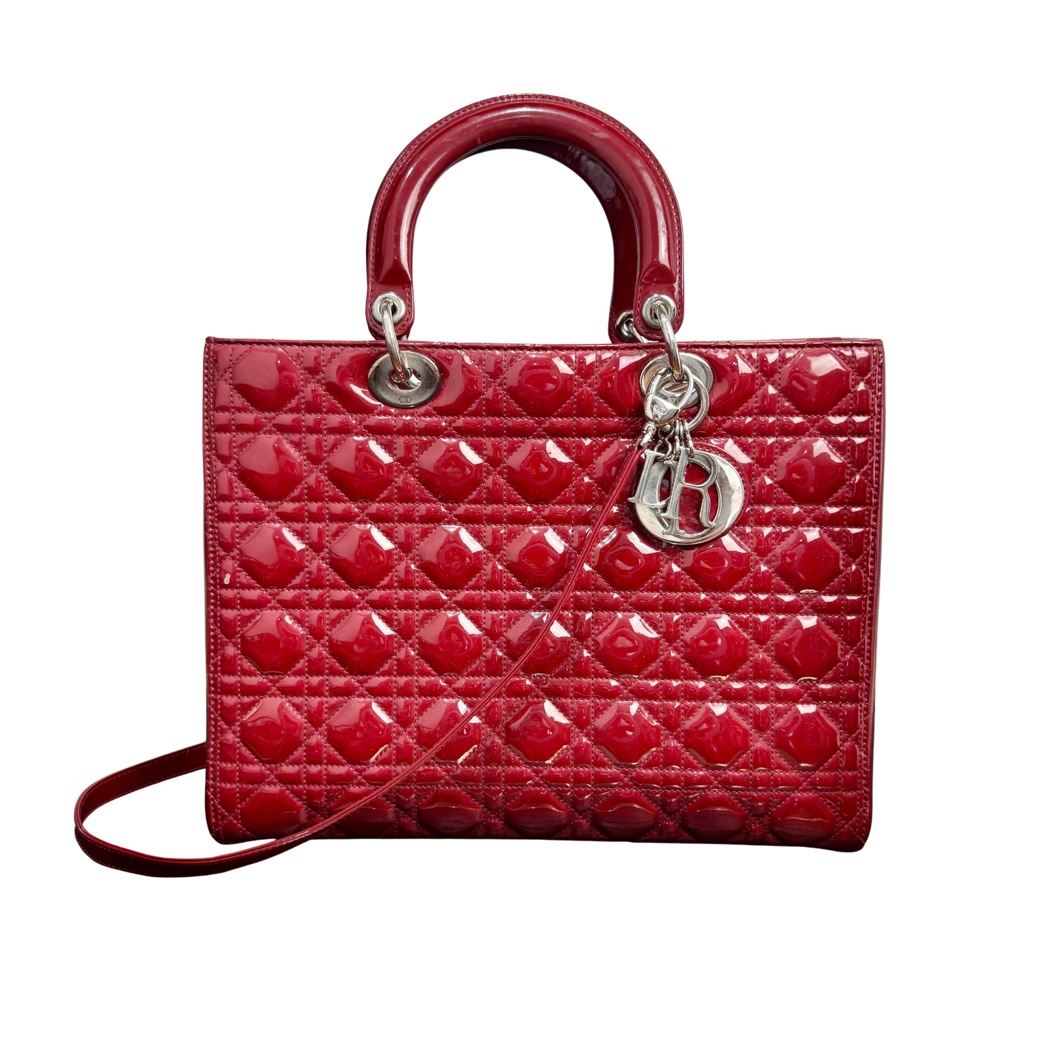 Dior | Lady Dior Large - Scarlet Red Patent Leather (Excellent Condition) - CONS