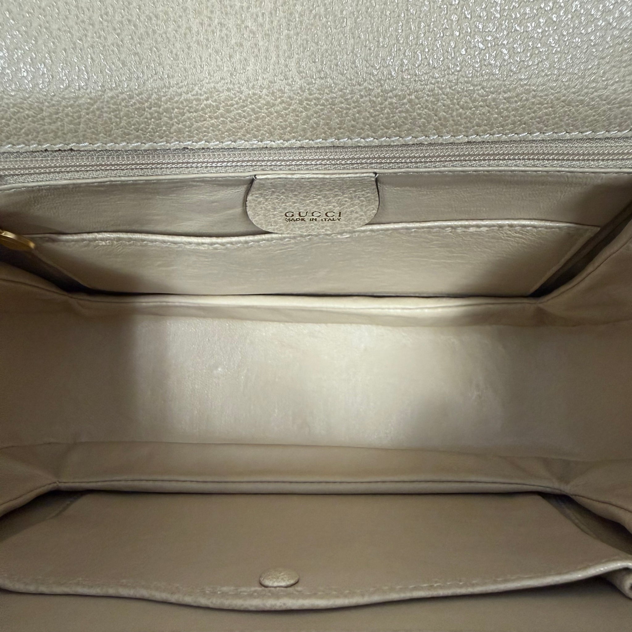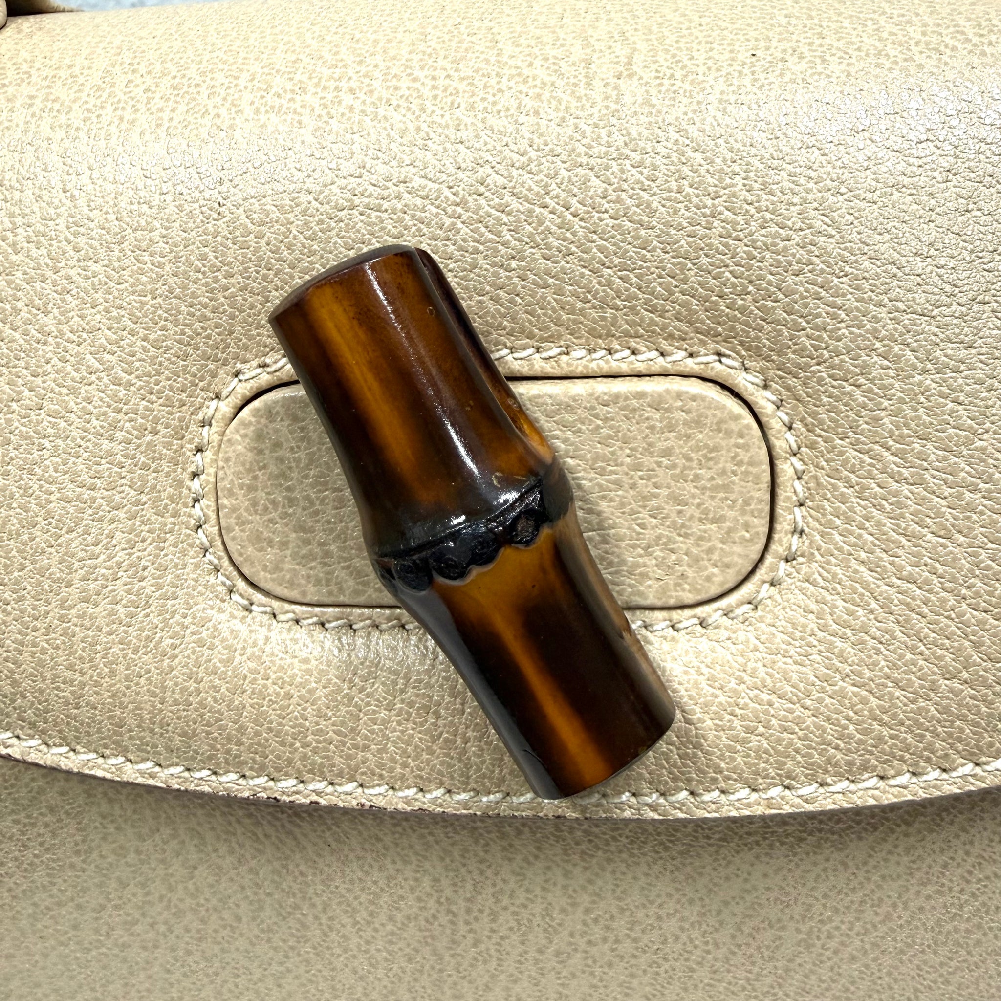 Gucci | Beige Pebbled Leather Bamboo Top Handle Satchel (Excellent Condition)