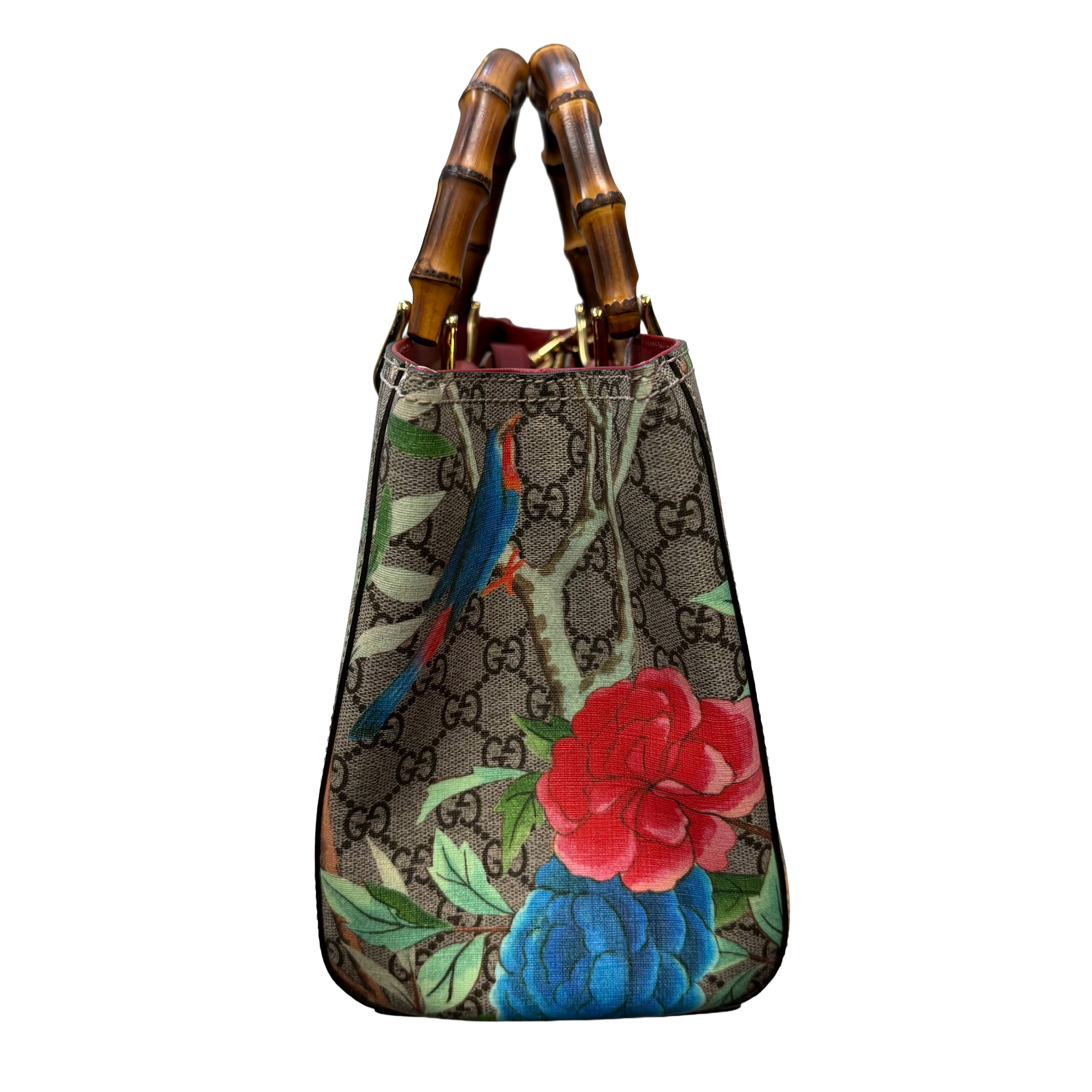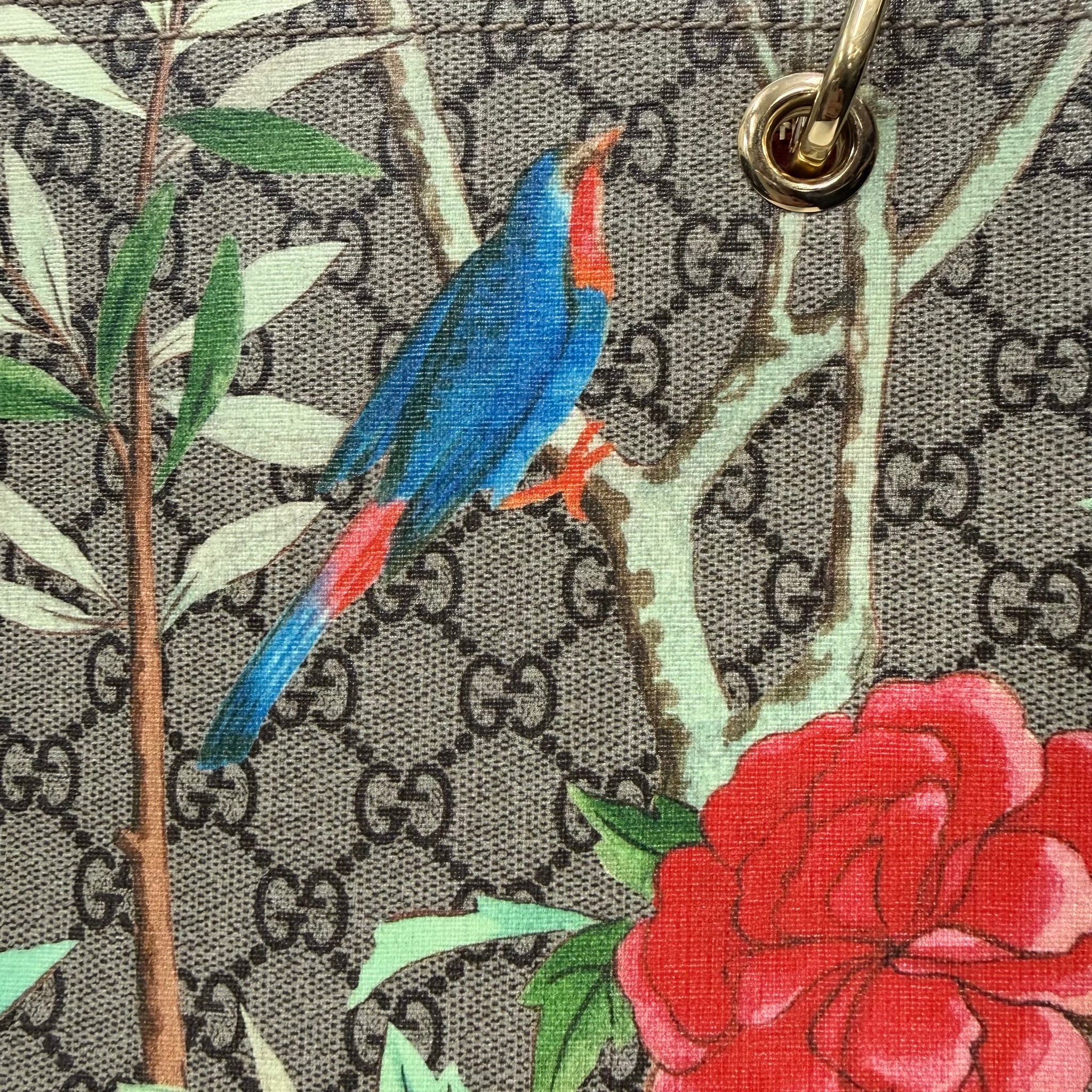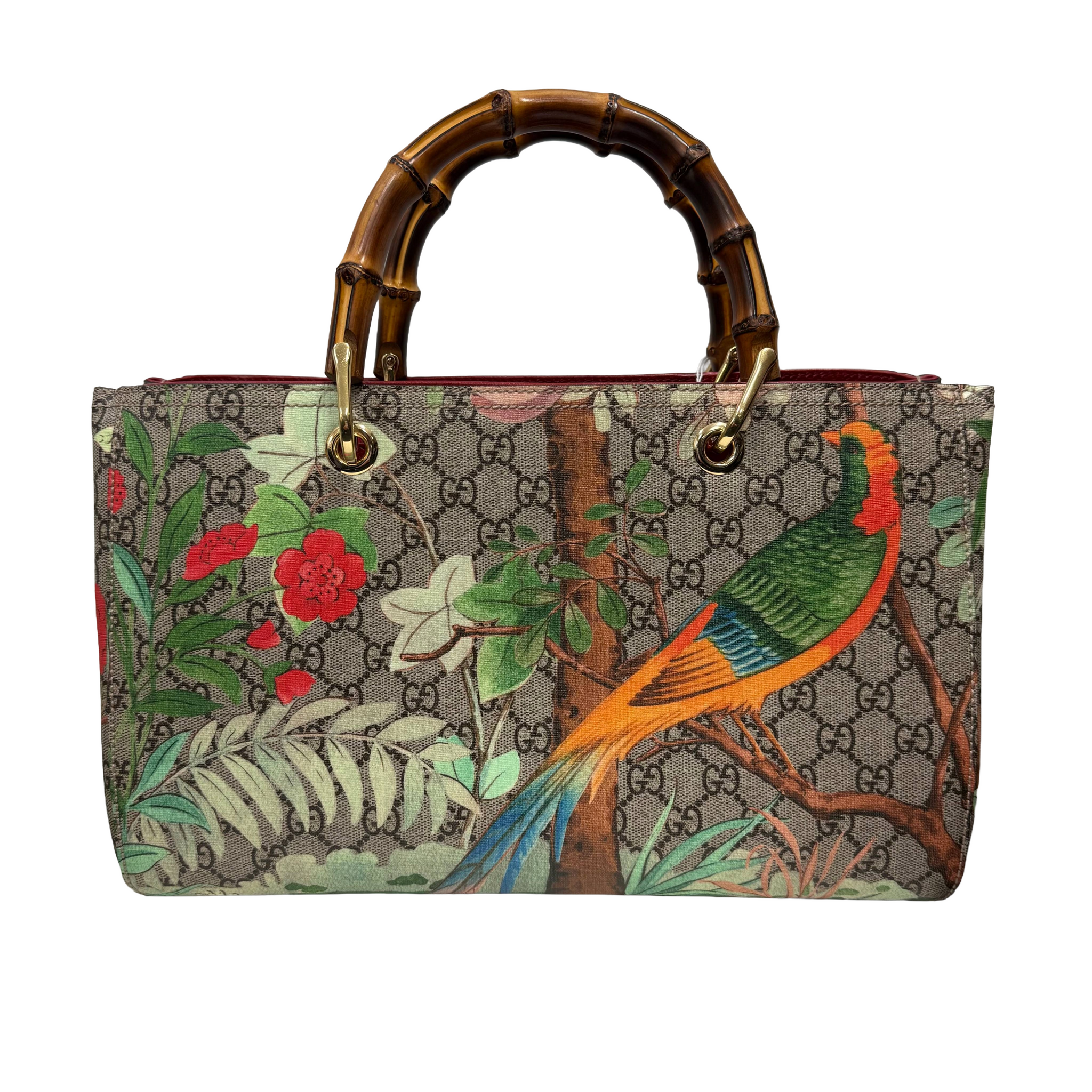 Gucci | Floral Bird Print Monogram Bamboo Handle Tote Bag (Pristine Condition)
