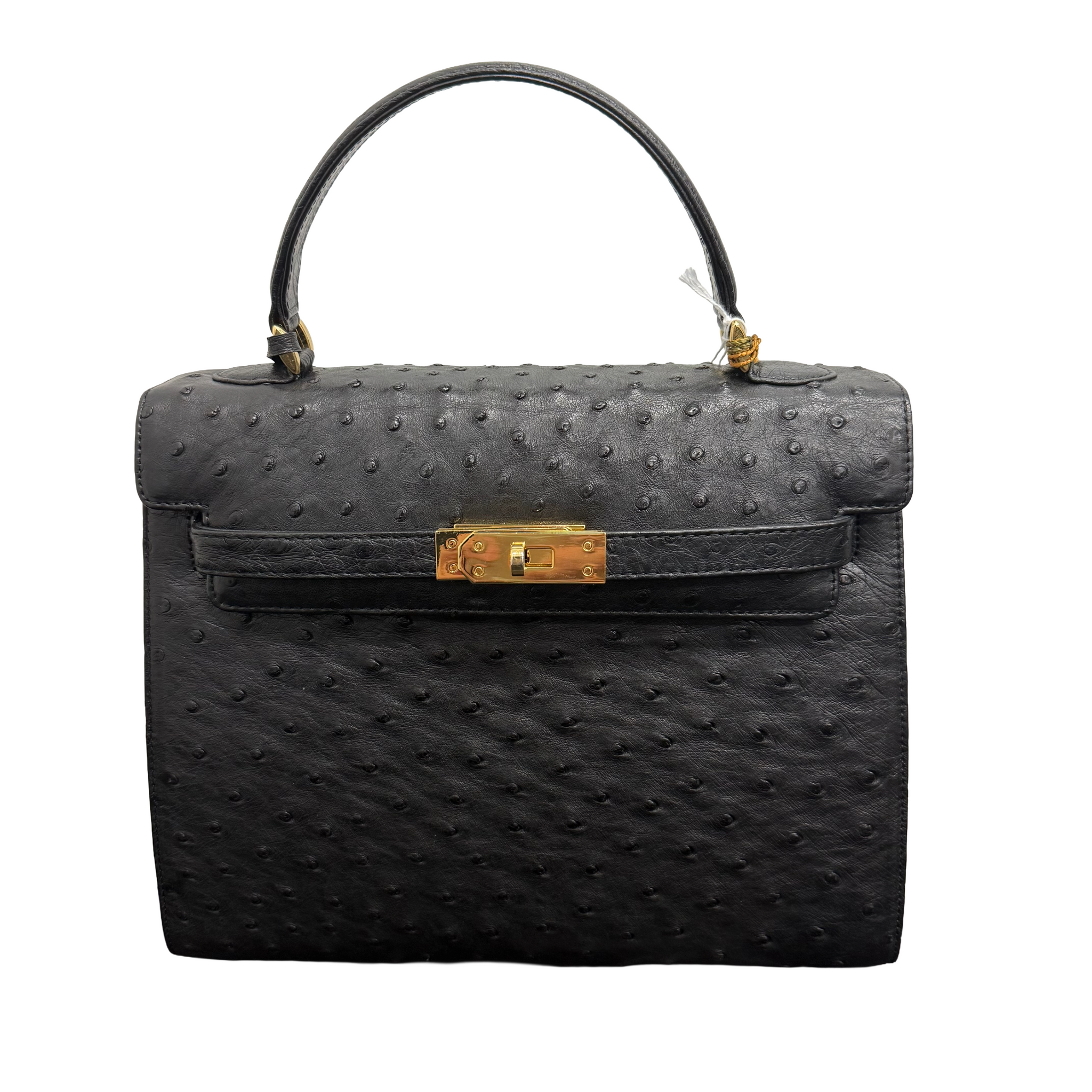JRA | Ostrich Leather Kelly-Style Handbag – Black & Gold Hardware (Pristine Condition)
