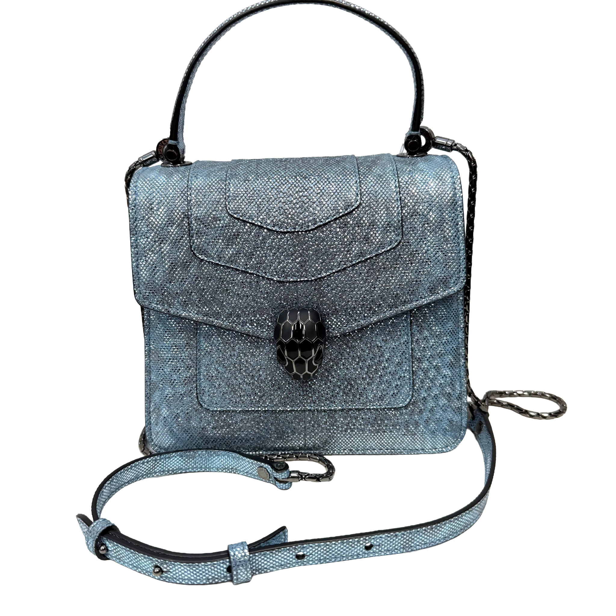 Bvlgari | Metallic Blue Serpenti Snakehead Clasp Top Handle Crossbody Bag (Pristine Condition)