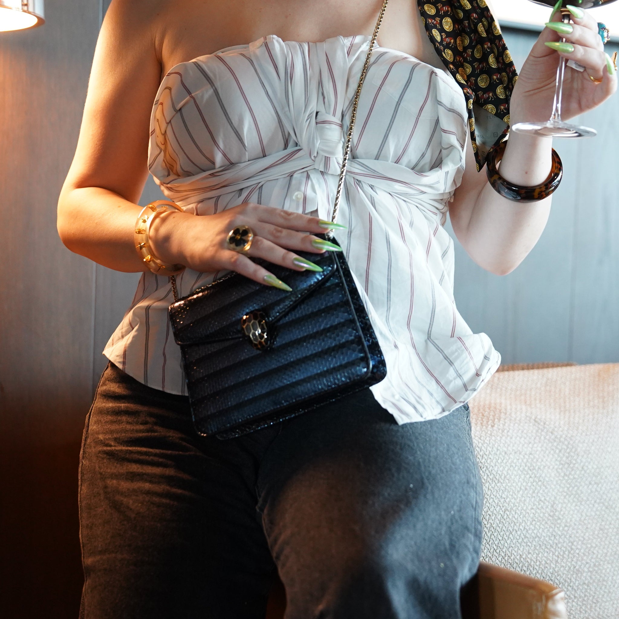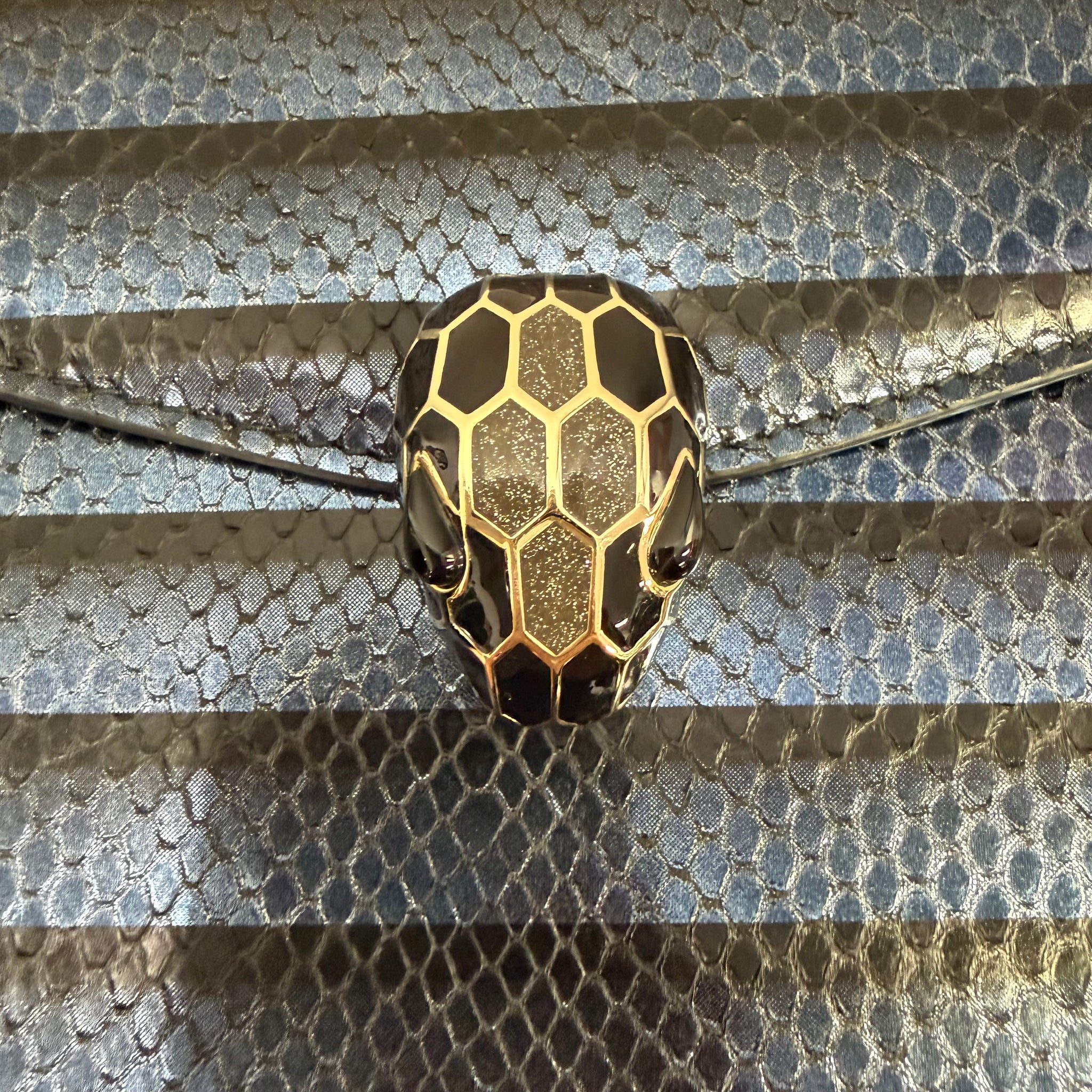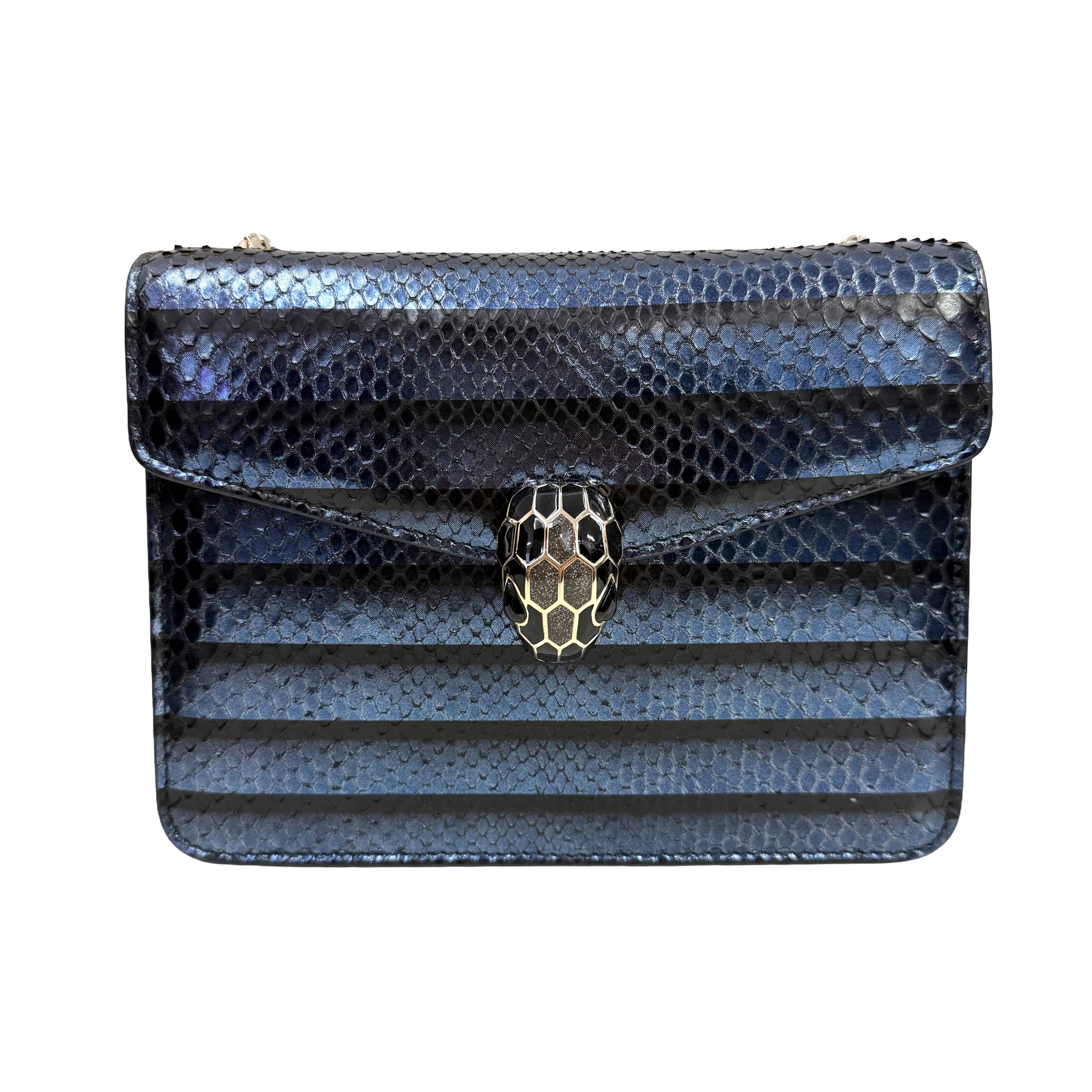 Midnight Blue Snakeskin Serpenti Style Chain Shoulder Bag – Metallic Exotic Mini Crossbody (Pristine Condition)